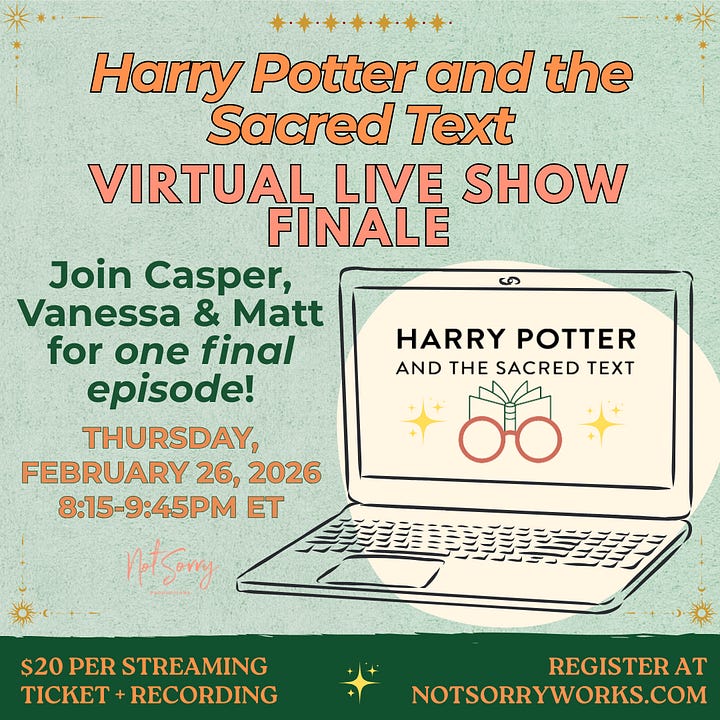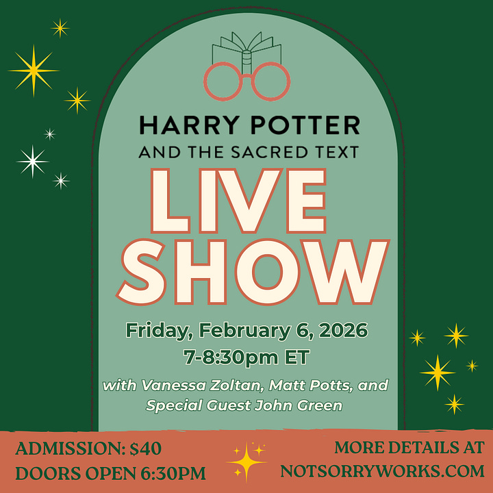 Podcasts: As you know, a beautiful sunset is on the horizon for Harry Potter and the Sacred Text! With that comes our final two shows: HPST in Indianapolis with John Green on Friday, February 6, and HPST’s Virtual Live Show Finale on Thursday, February 26th. Join Matt and Vanessa in Indy or the entire HPST team from the comfort of your own home. We hope to see you there next month for these final shows.